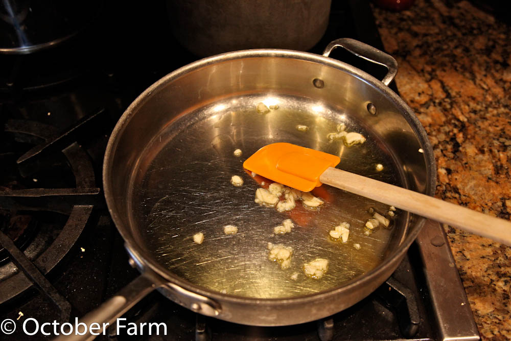 Saute' 2 diced garlic cloves in 1 T. of olive oil for a minute.