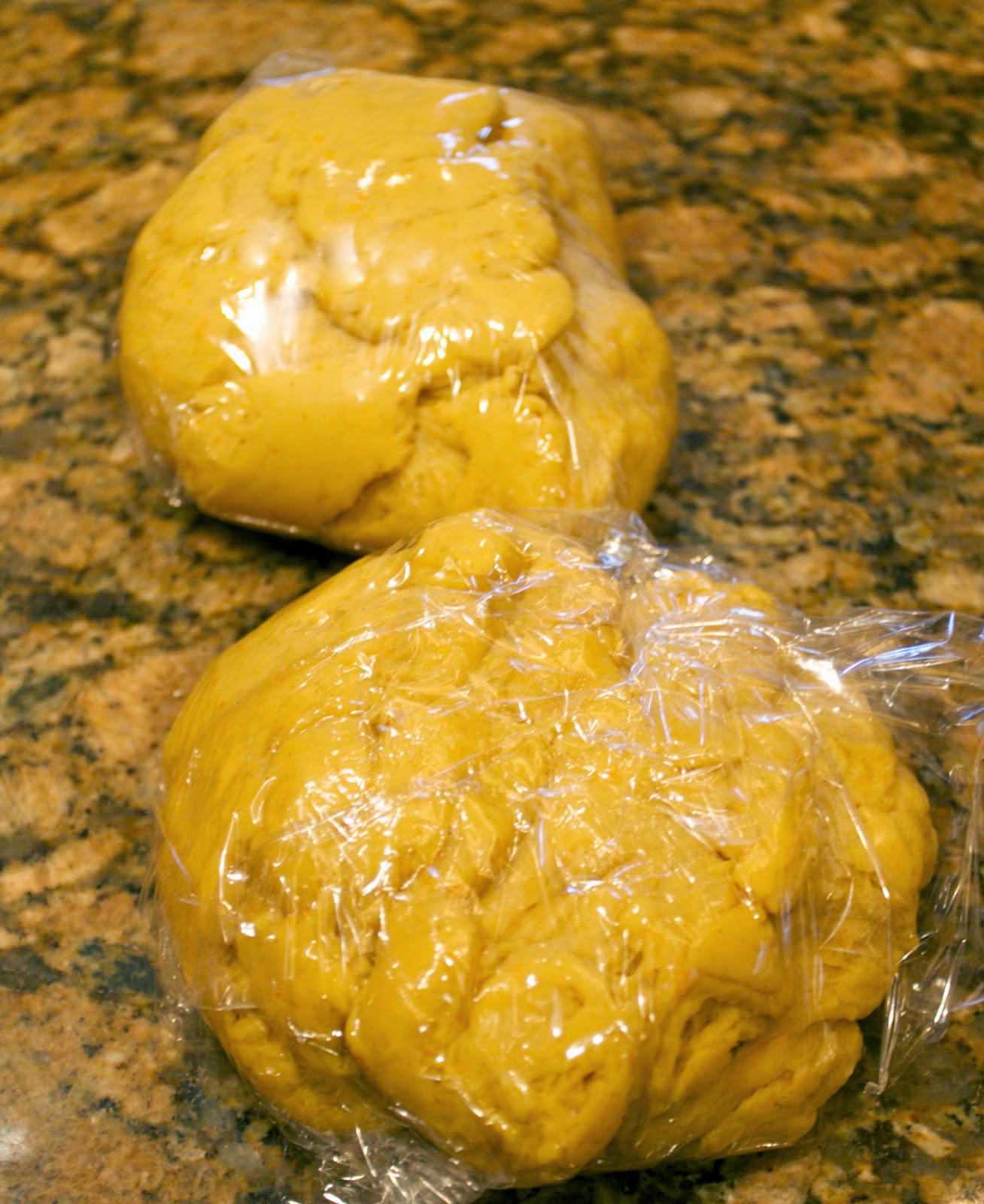 Turn dough out onto a floured board, divide in half, cover with plastic wrap and let rest for at least 20 minutes.