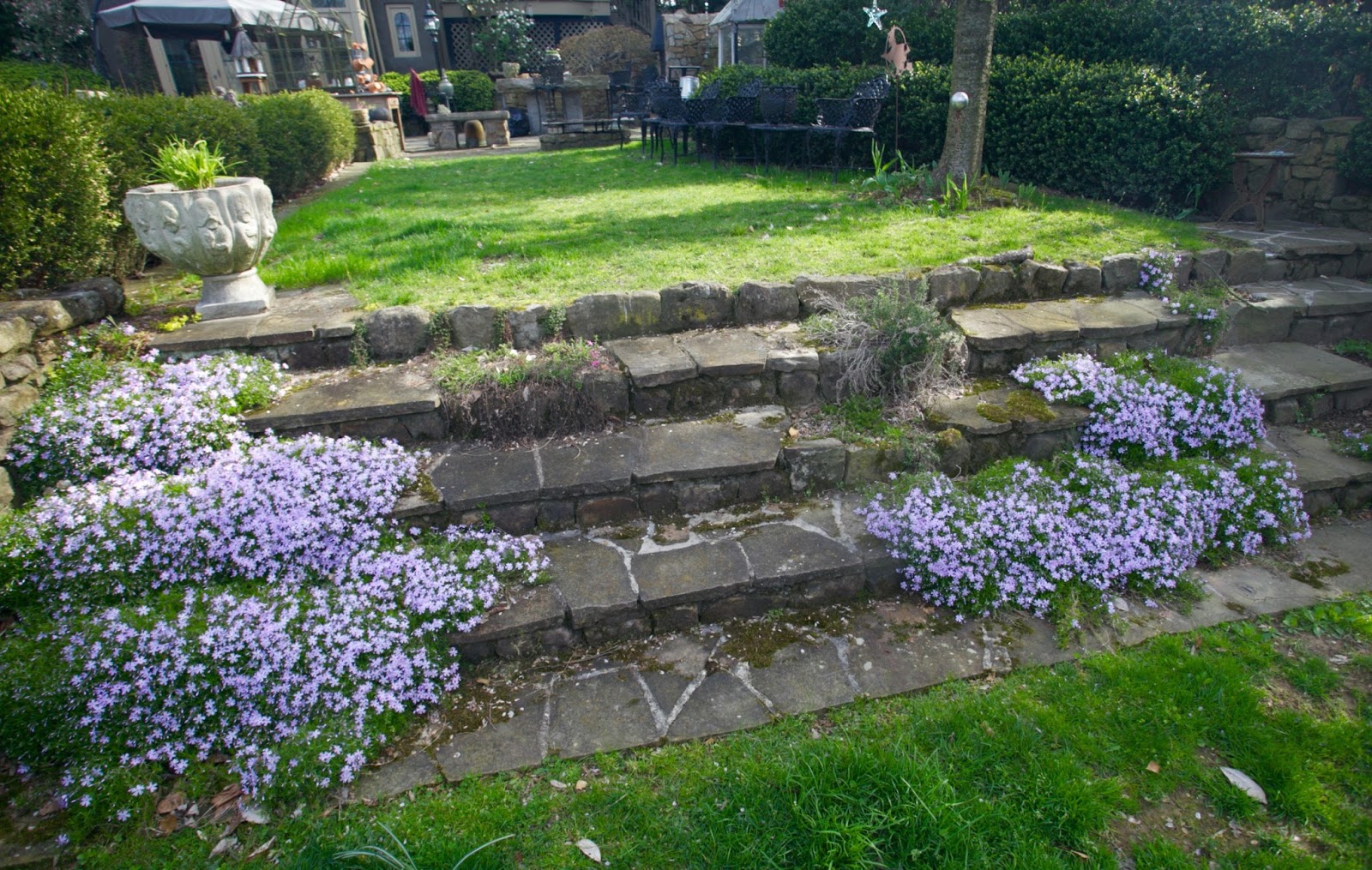 | The phlox is blooming. I just bought some pink phlox yesterday to add to these steps. |
