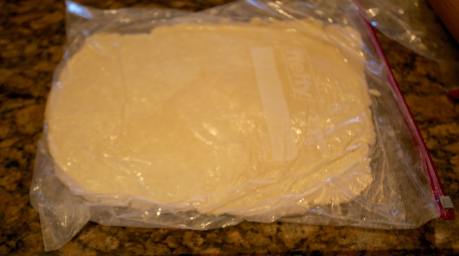 Stacked up and placed in the freezer. This makes pie baking so much easier.