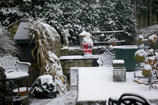 Even Santa was covered in snow. Santa and cornstalks, it's that time of year. Just past Thanksgiving but not totally prepared for Xmas.