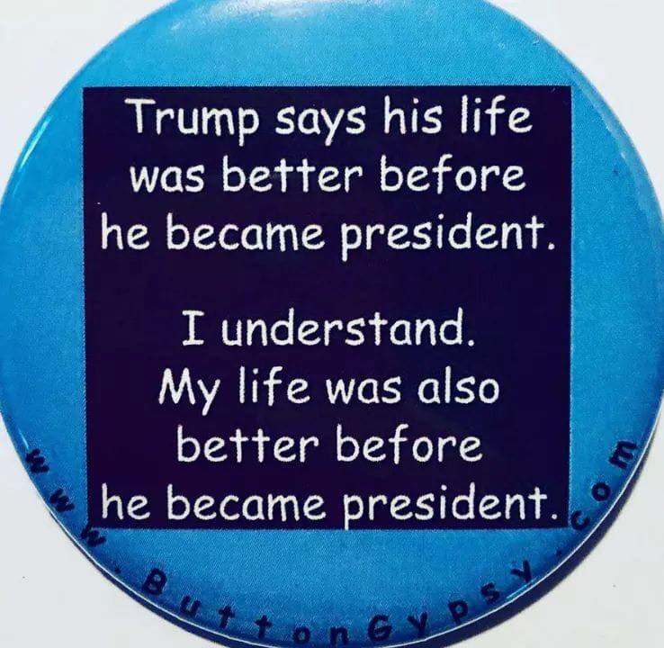 Seeing anti-Trump messages are the only time I smile lately. I want my old life back under Democrats...please God...or whoever.