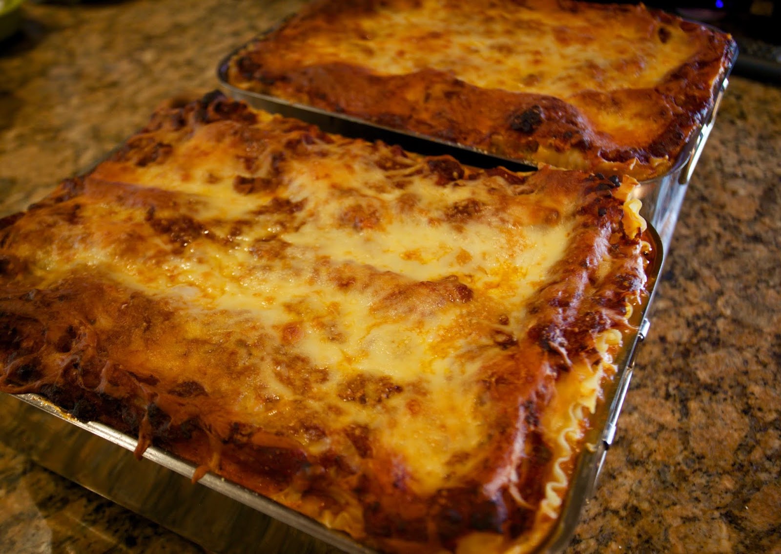 These lasagna pans are very deep. There are 5 layers in each lasagna.