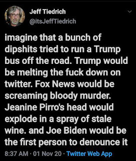 You know, I was feeling comfortable in my belief that this awful man would be voted out. Then I watched 60 Minutes last night. I will be in line tomorrow to vote. The idea of waiting days for an outcome while our twitter pated president rallies his sycophants is a bit worrisome to me. Vote blue if you believe in democracy.