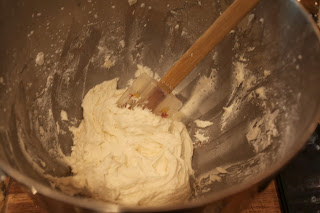 Add 1-1/2 C. flour, 1-1/2 tsp. baking powder, 1 tsp. salt, 1 tsp. cinnamon, 1/2tsp. ginger and 1/4 tsp. nutmeg. Beat this all together. Add 1-1/2 C. shredded zucchini and 3/4 C. chopped walnuts.
